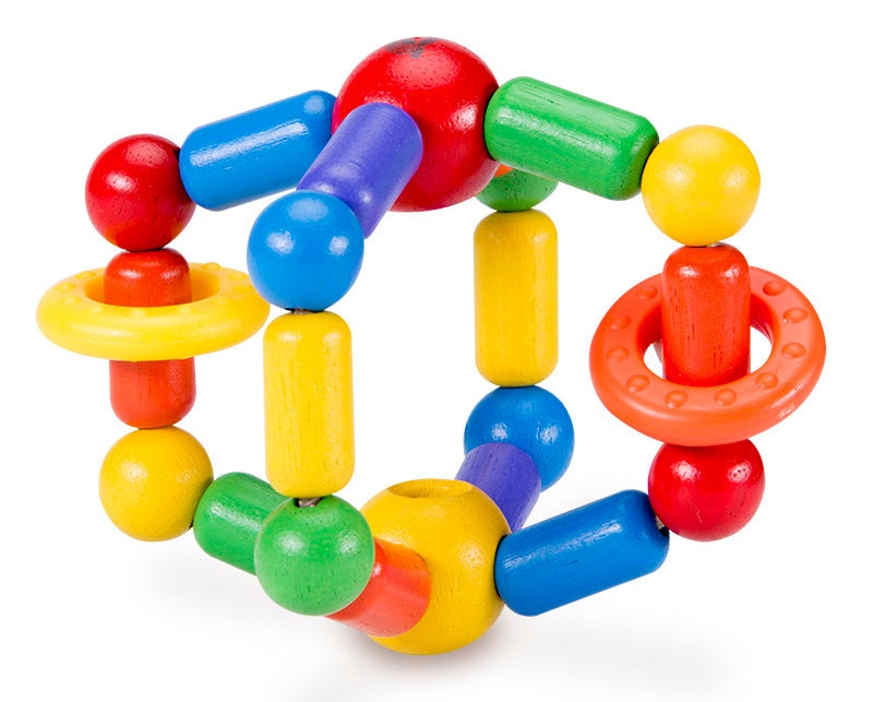 The Wonderworld Twist & Roll is a reach and grasp toy in enticing vivid colours, that produces sound and movement when manipulated. Children's hand-eye coordination and fine motor skills are increased with the use of this Rubber wood toy.
