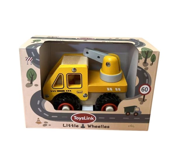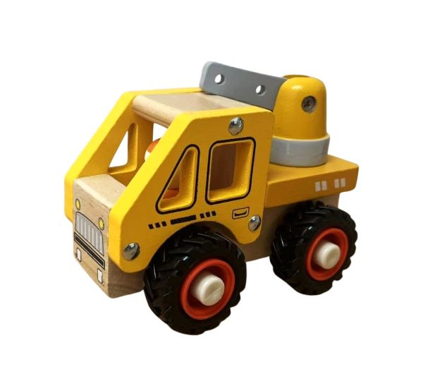 Crafted with realistic details, this sturdy wooden crane inspires budding builders.
