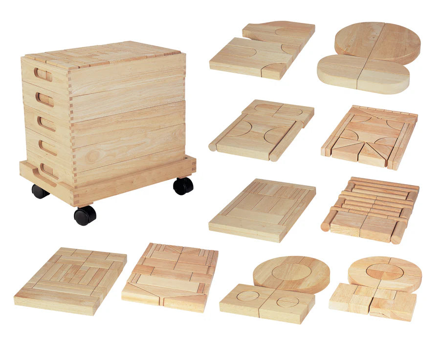 Wooden Unit Blocks Set & Trolley - 192 pieces